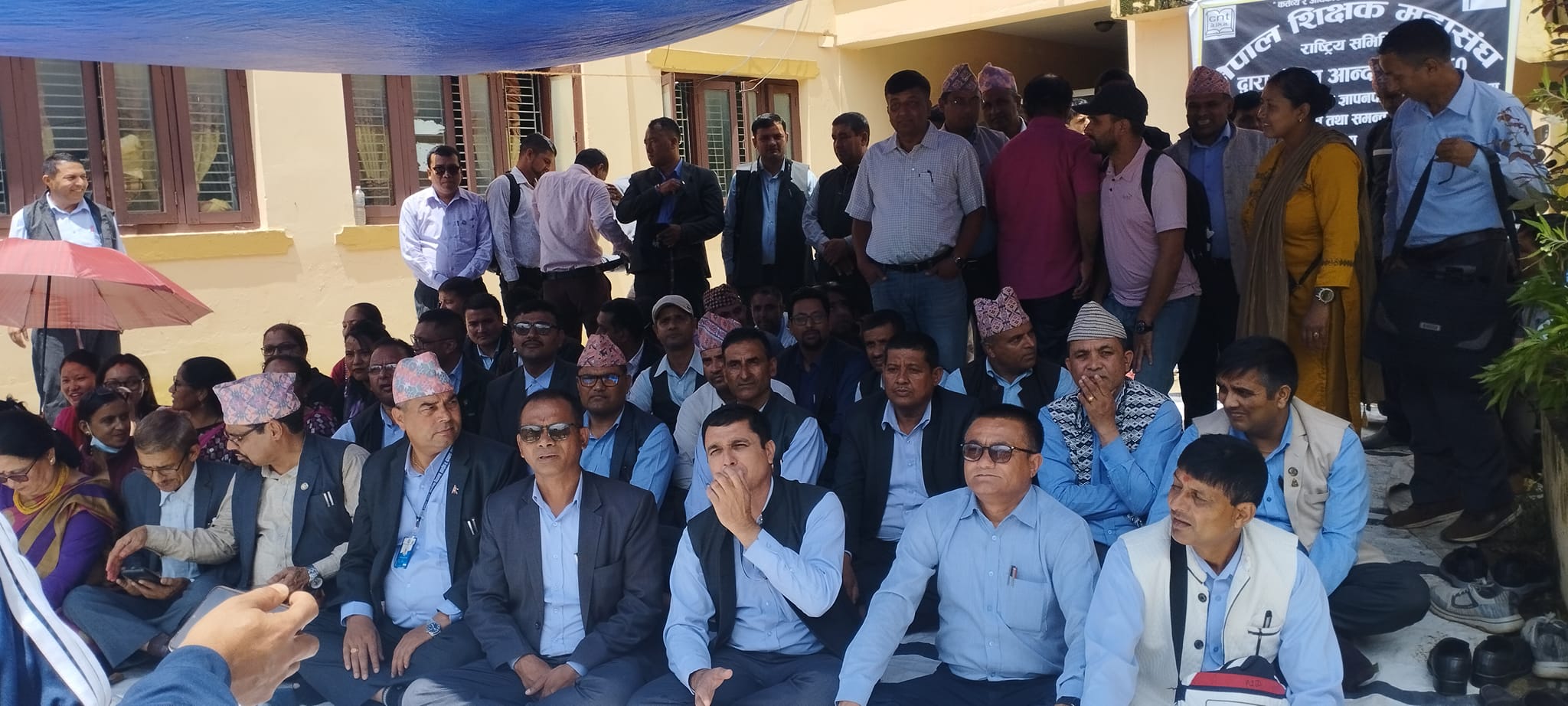 समन्वय एकाईमा शिक्षक महासंघको धर्ना