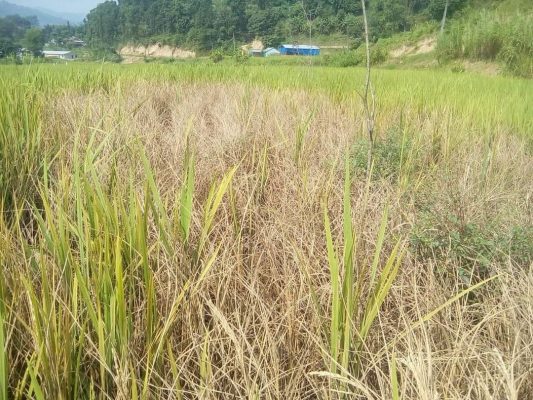 धान खेतीमा देखिन थाल्यो फड्के किराको प्रकोप